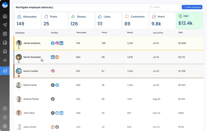 Analyze and understand the impact your employee advocacy is having on your reach and social media presence.