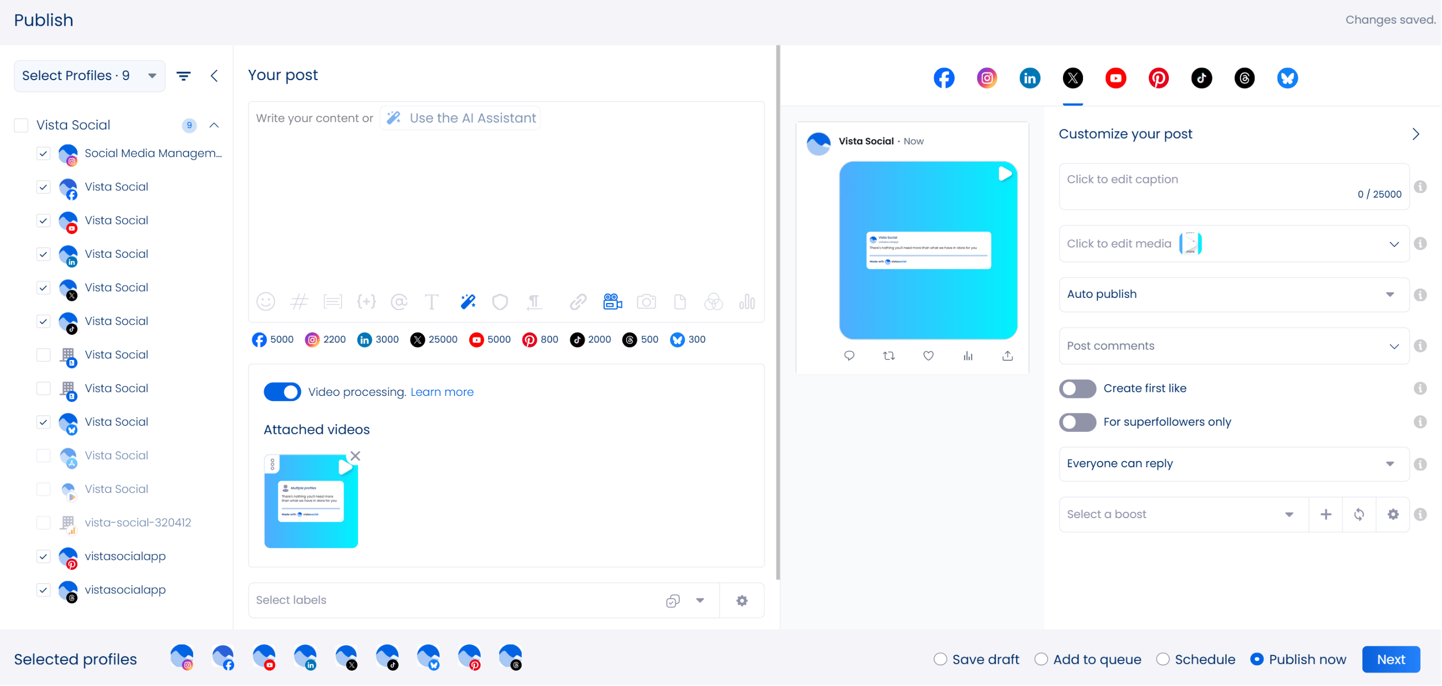 Don’t skip on using Vista Social’s robust social media management features, including AI-powered tools, to create dynamic videos.