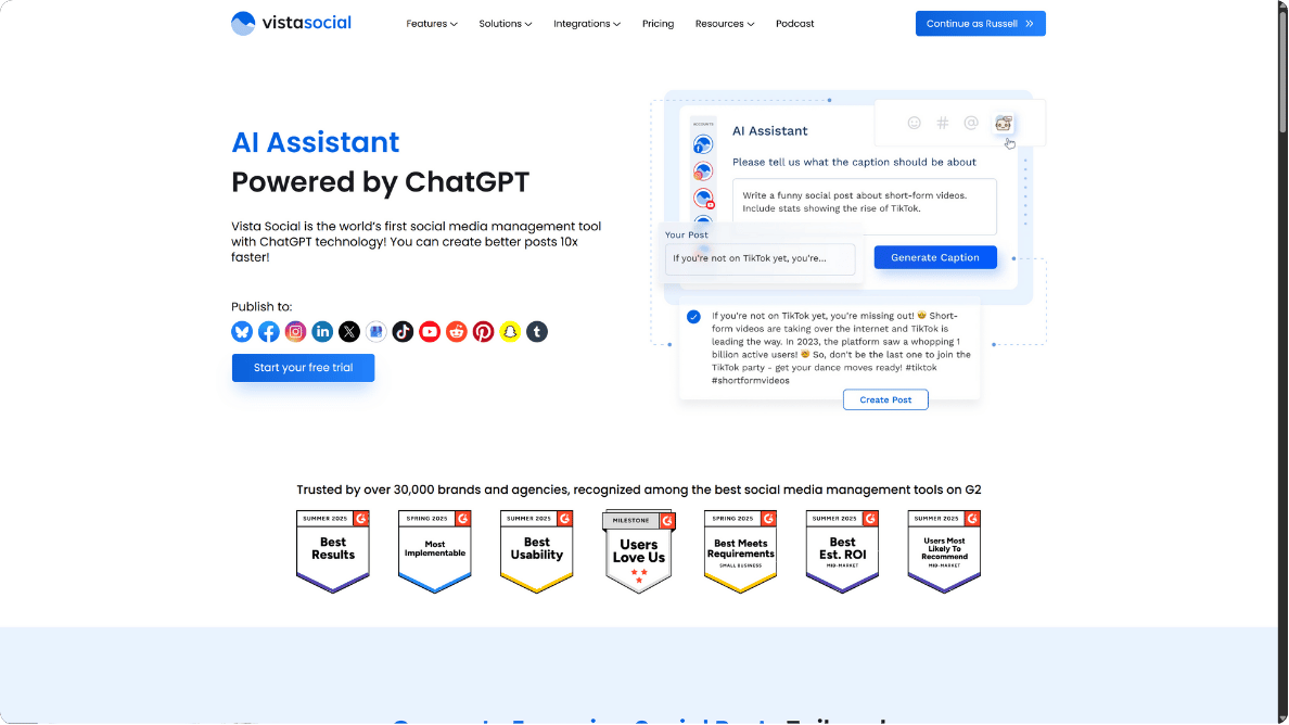 Pricing: Available on all Vista Social plans, starting with 10 AI uses per month on the free plan