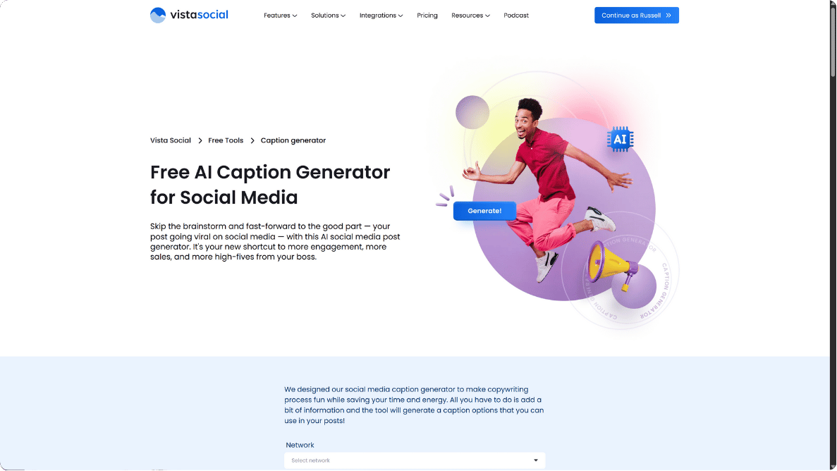 For creators and small businesses who want easy AI caption help, Vista Social has a completely free caption generator that gives professional results.