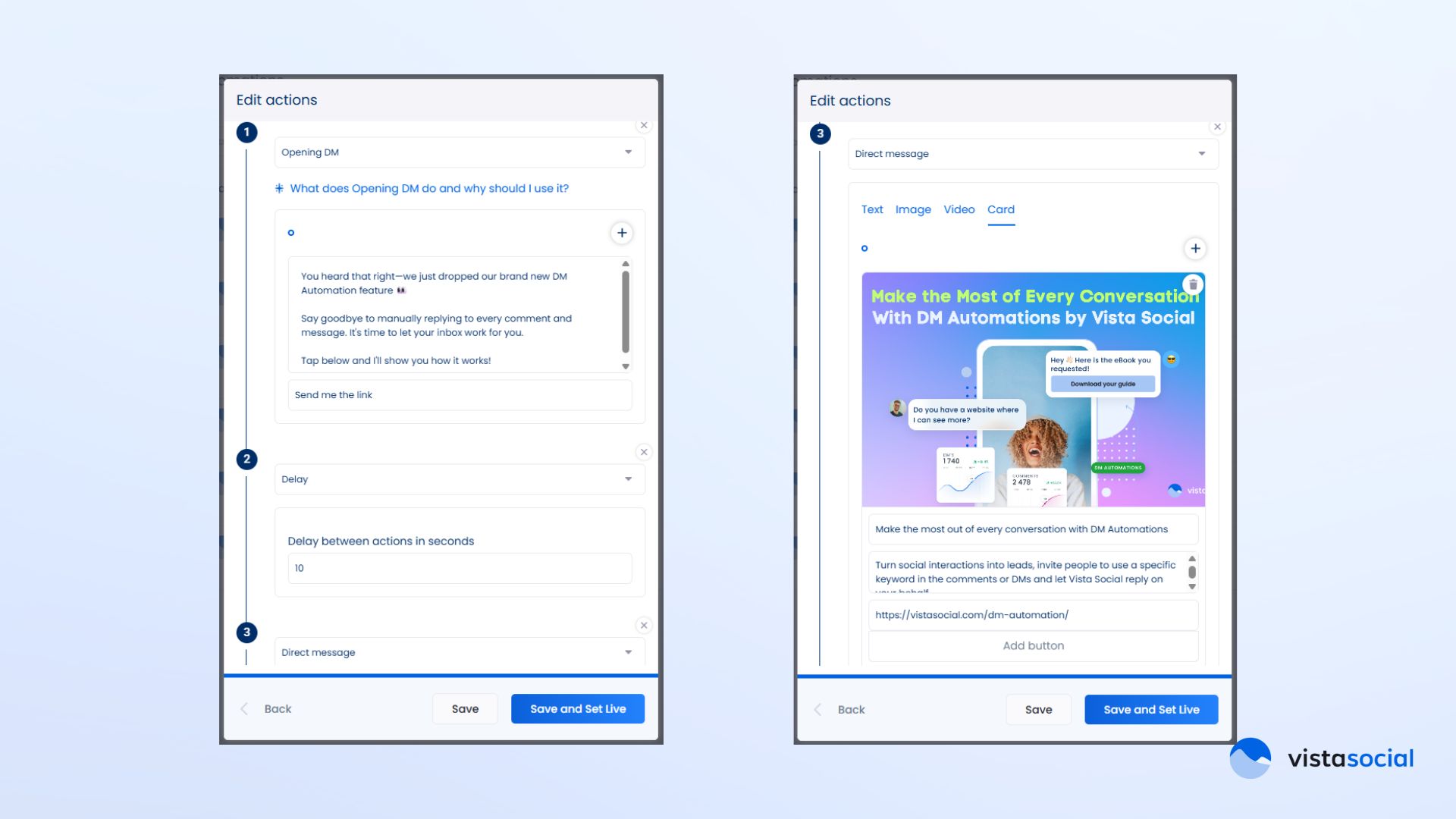 You don’t need to sacrifice personal connection to keep up with engagement. With DM Automation by Vista Social, you can automate the moments that matter—while still sounding just like you.