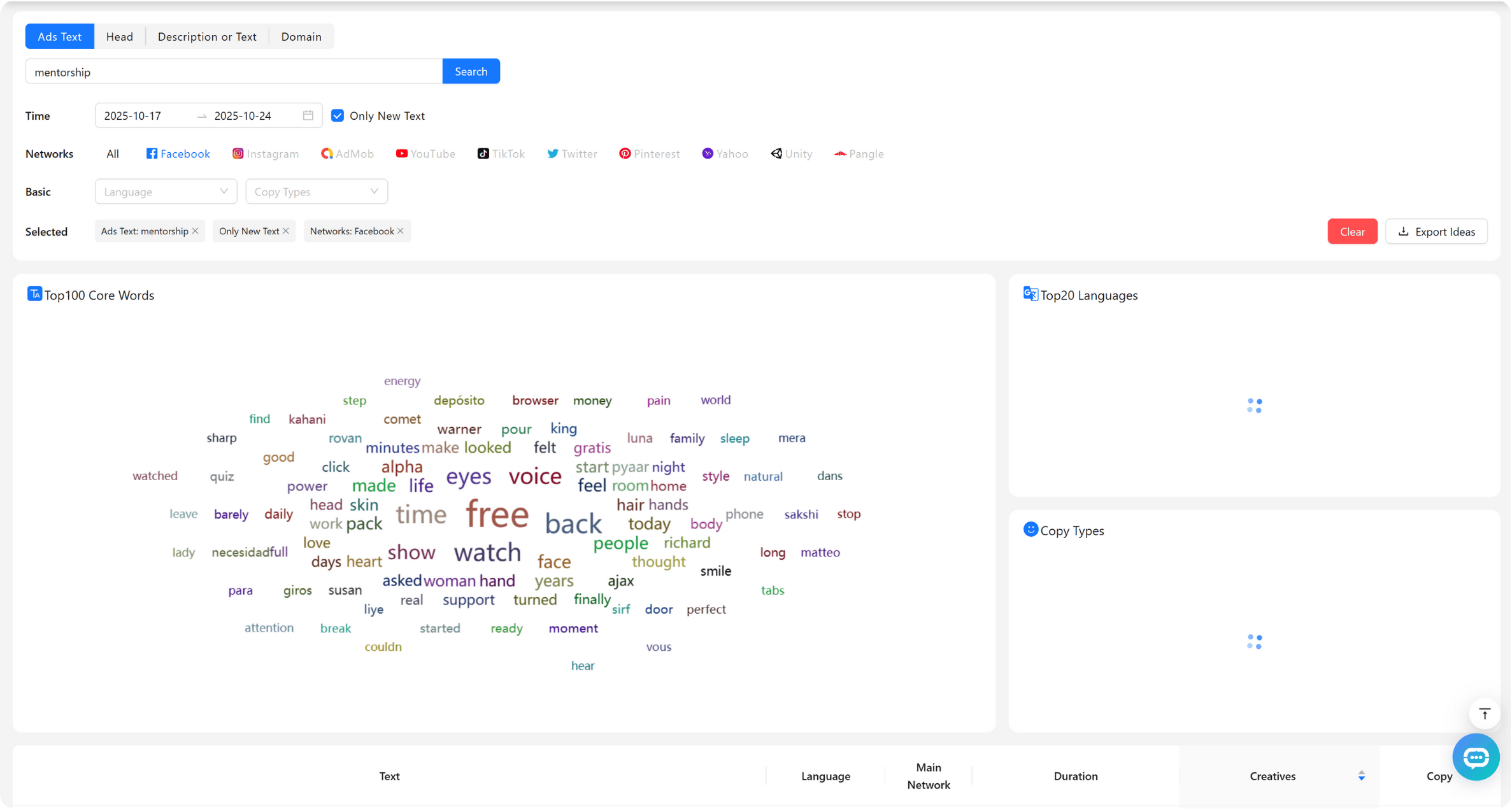 You can explore a huge library of ads across multiple platforms and find fresh creative angles that match your goals. The search tool also lets you dig deeper with keywords.