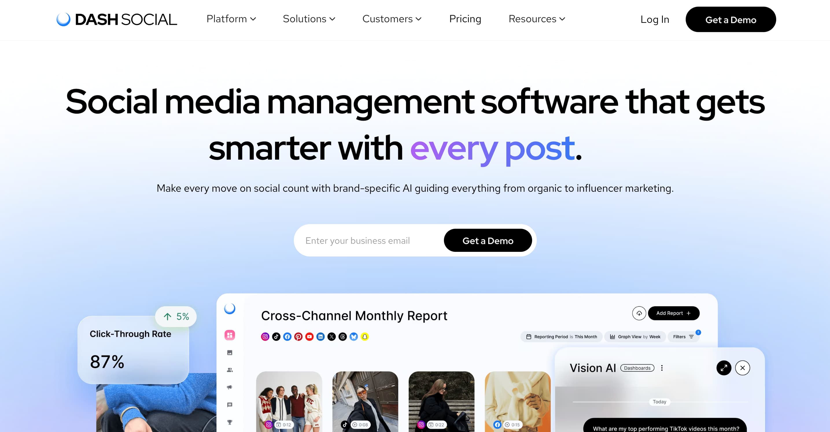 Dash Social is the perfect solution for ecommerce businesses who often partner with influencers. Not only does the phe platform offers straightforward post scheduling and analytics, it also includes capabilities like creator management and link-in-bio shopping.