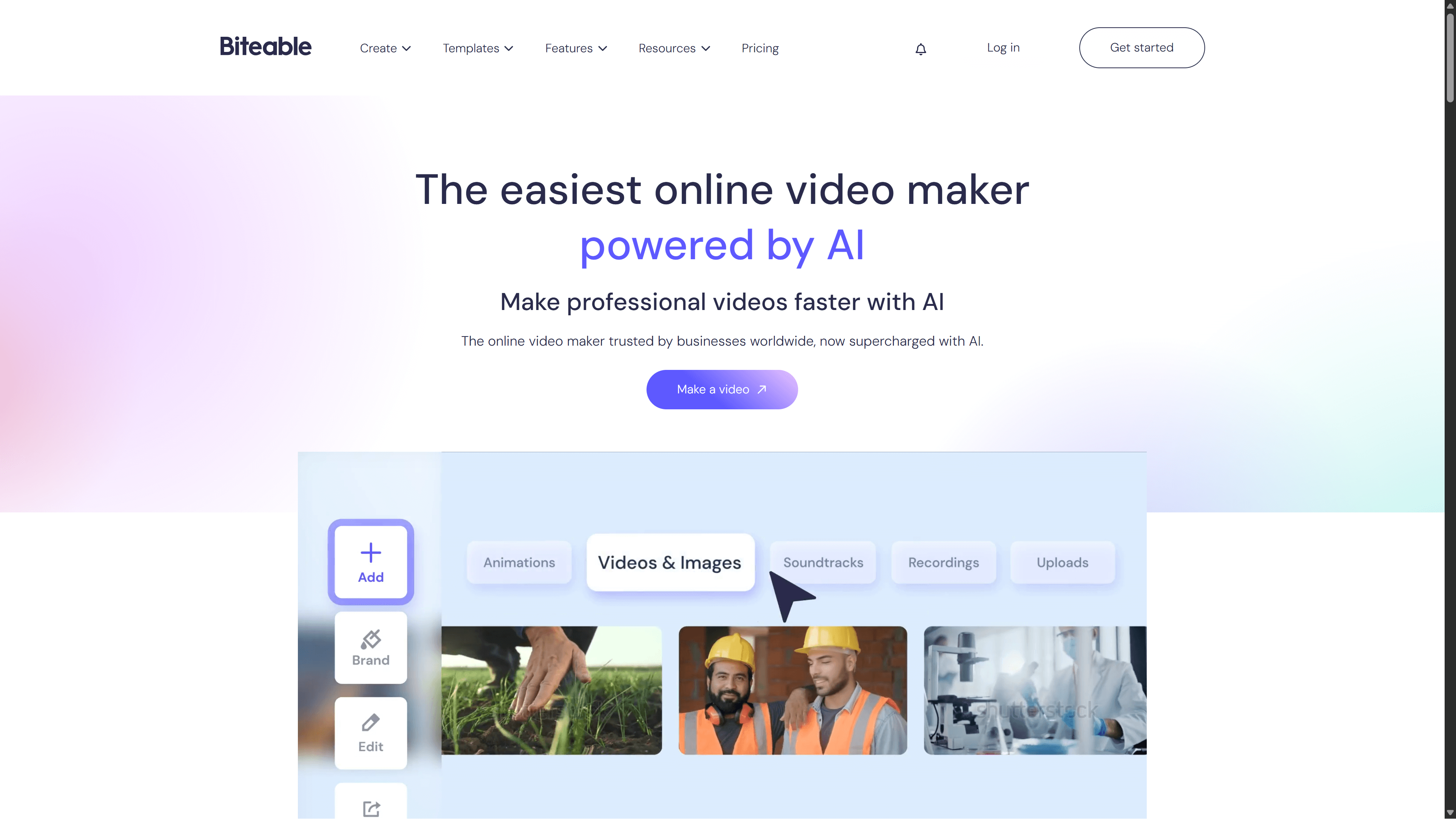 Biteable creates professional marketing videos in minutes without requiring video editing experience. The platform provides video templates for ads, social media, presentations, and more that you simply customize with your content.