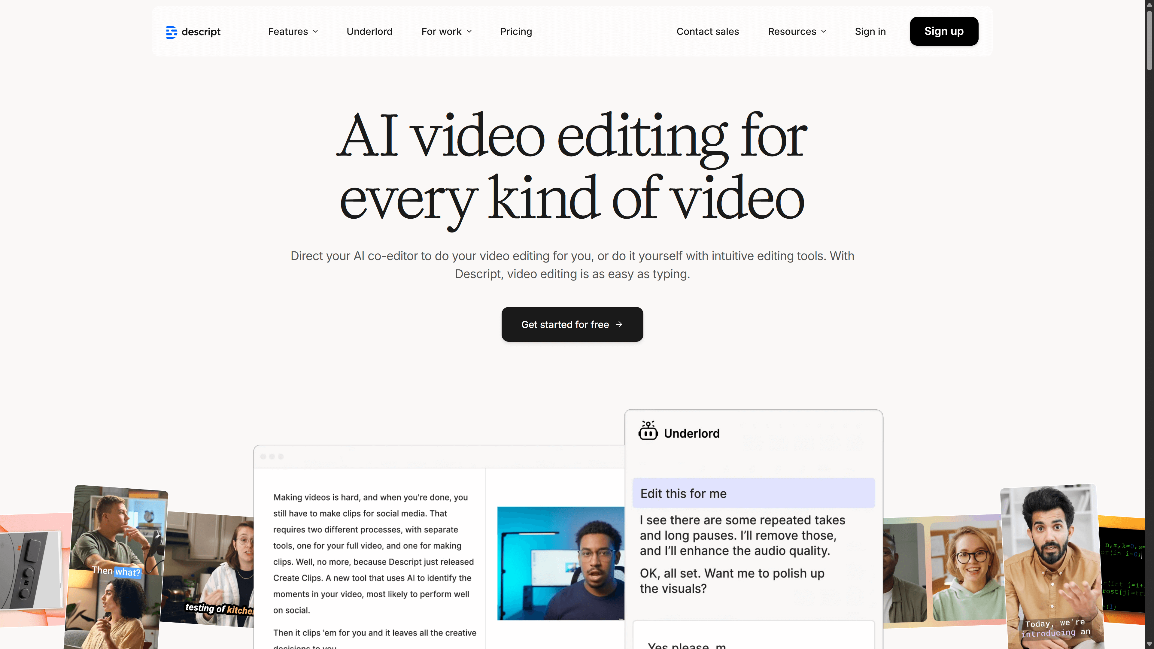 Descript revolutionizes audio and video editing by letting you edit content as easily as editing a text document. The platform automatically transcribes your audio and video, then lets you delete words from the transcript to remove them from the recording.