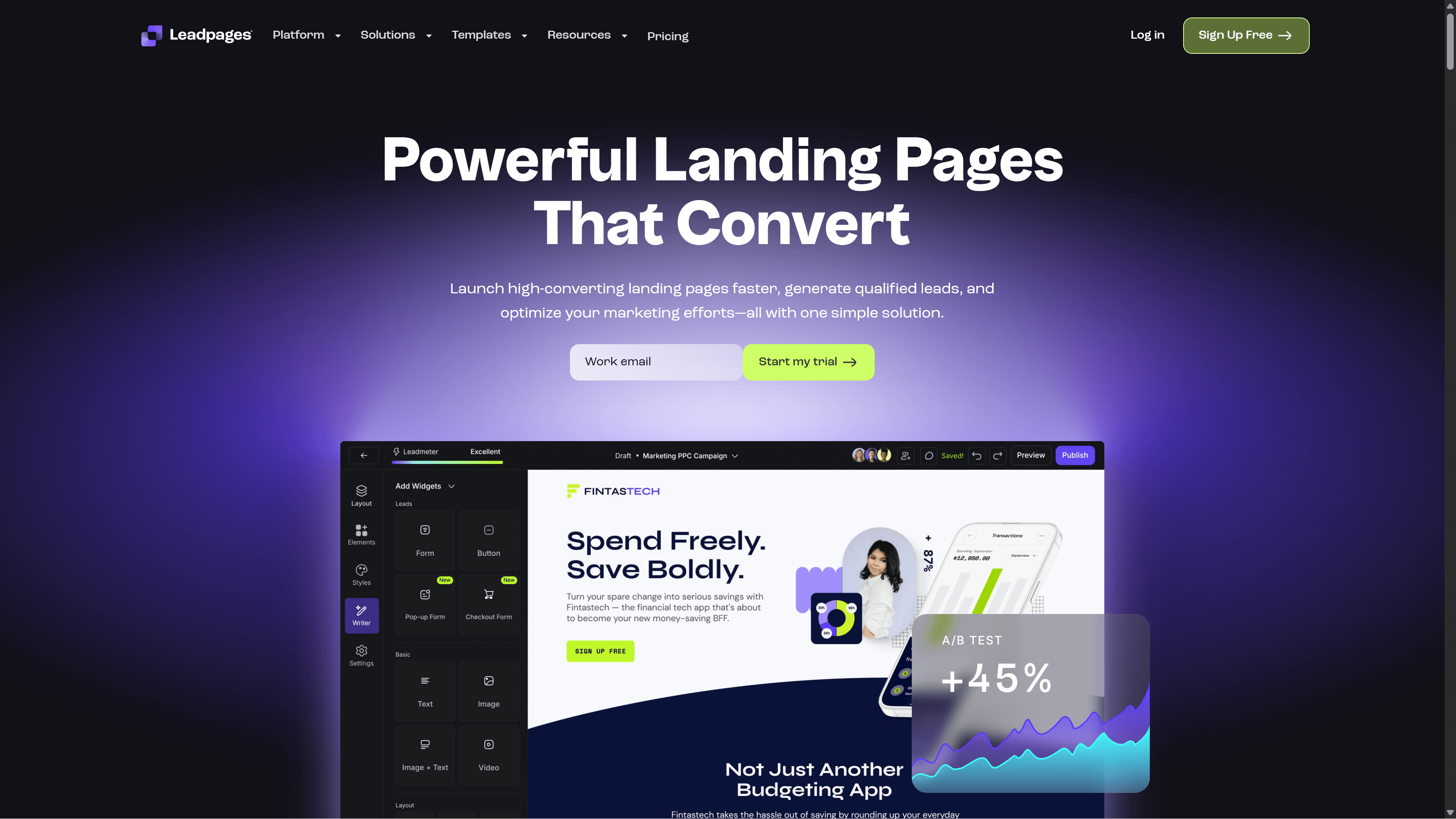 Leadpages lets you build high-converting landing pages quickly without technical skills or developer help. The drag-and-drop builder and templates make it easy to create professional pages in minutes.