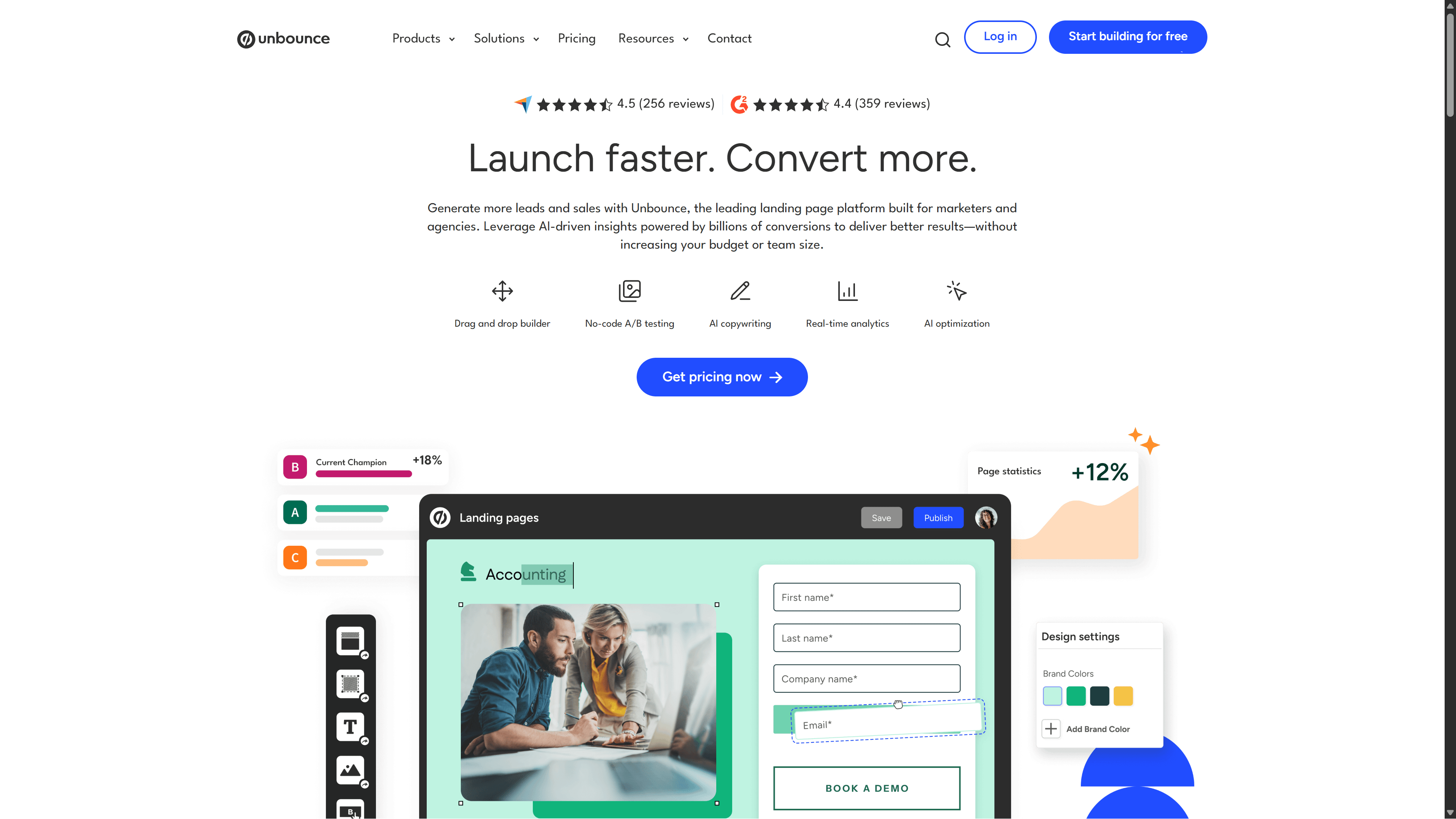 Unbounce combines landing page building with AI-powered optimization through its Smart Traffic feature. Smart Traffic automatically routes visitors to the landing page variant most likely to convert them based on their attributes.