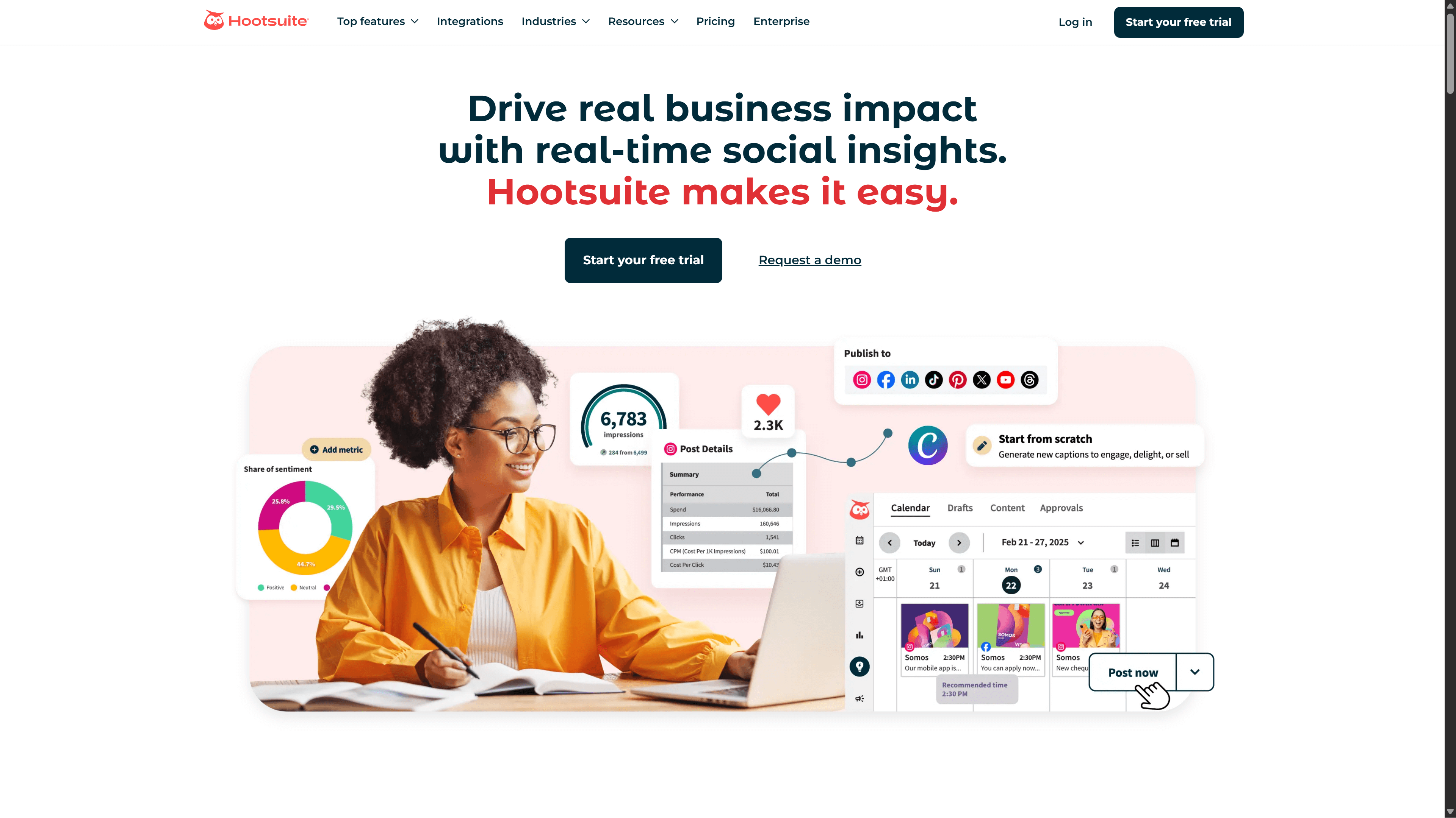 Hootsuite is one of the established names in social media management, offering a solid foundation of scheduling and monitoring features. The platform covers the basics well and distinguishes itself by including social listening across millions of sources in all plans.