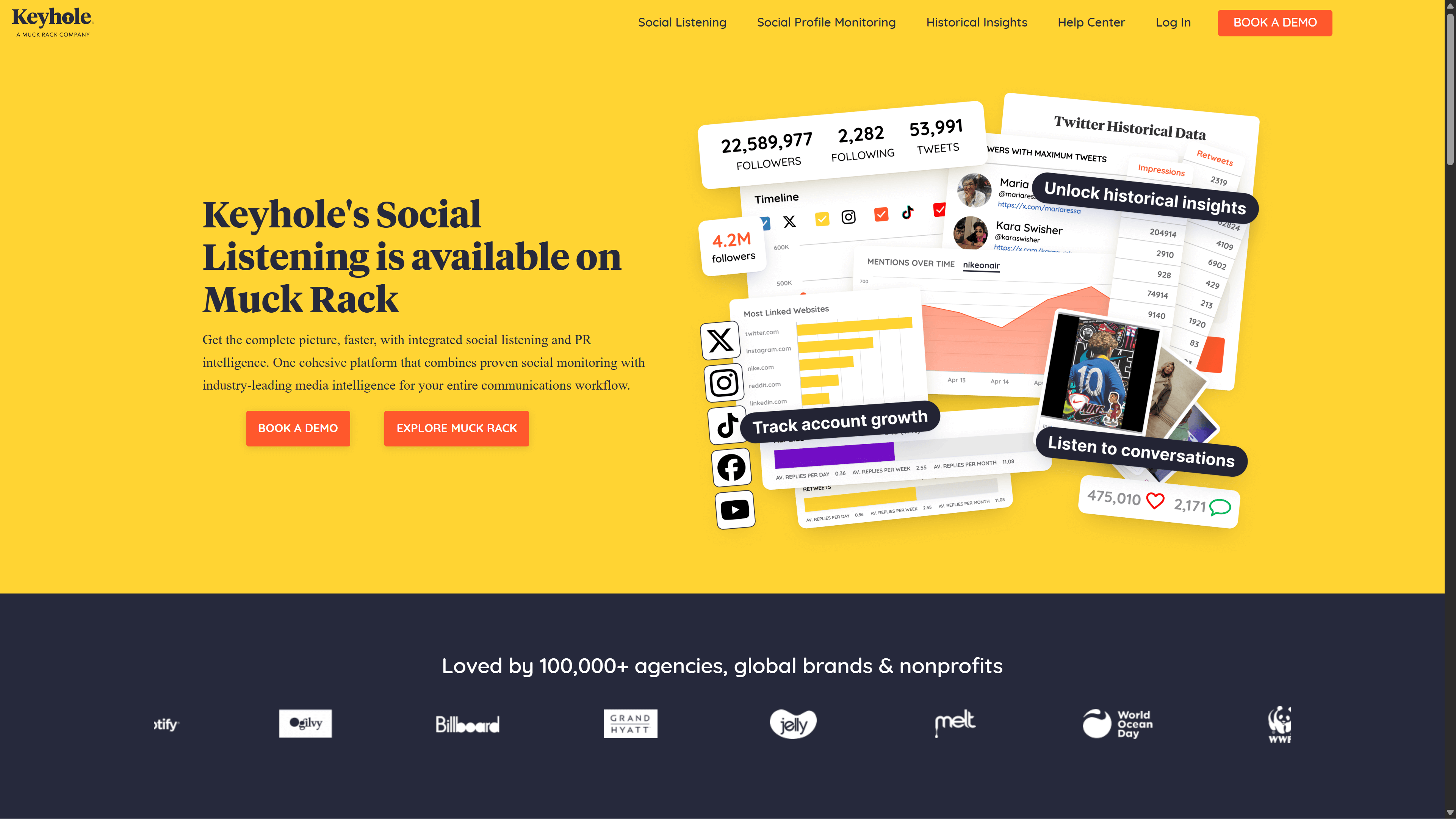 Keyhole tracks hashtags, keywords, and brand mentions as they happen across social media platforms. This real-time monitoring makes it perfect for brands running campaigns or events that need immediate visibility into performance and sentiment.