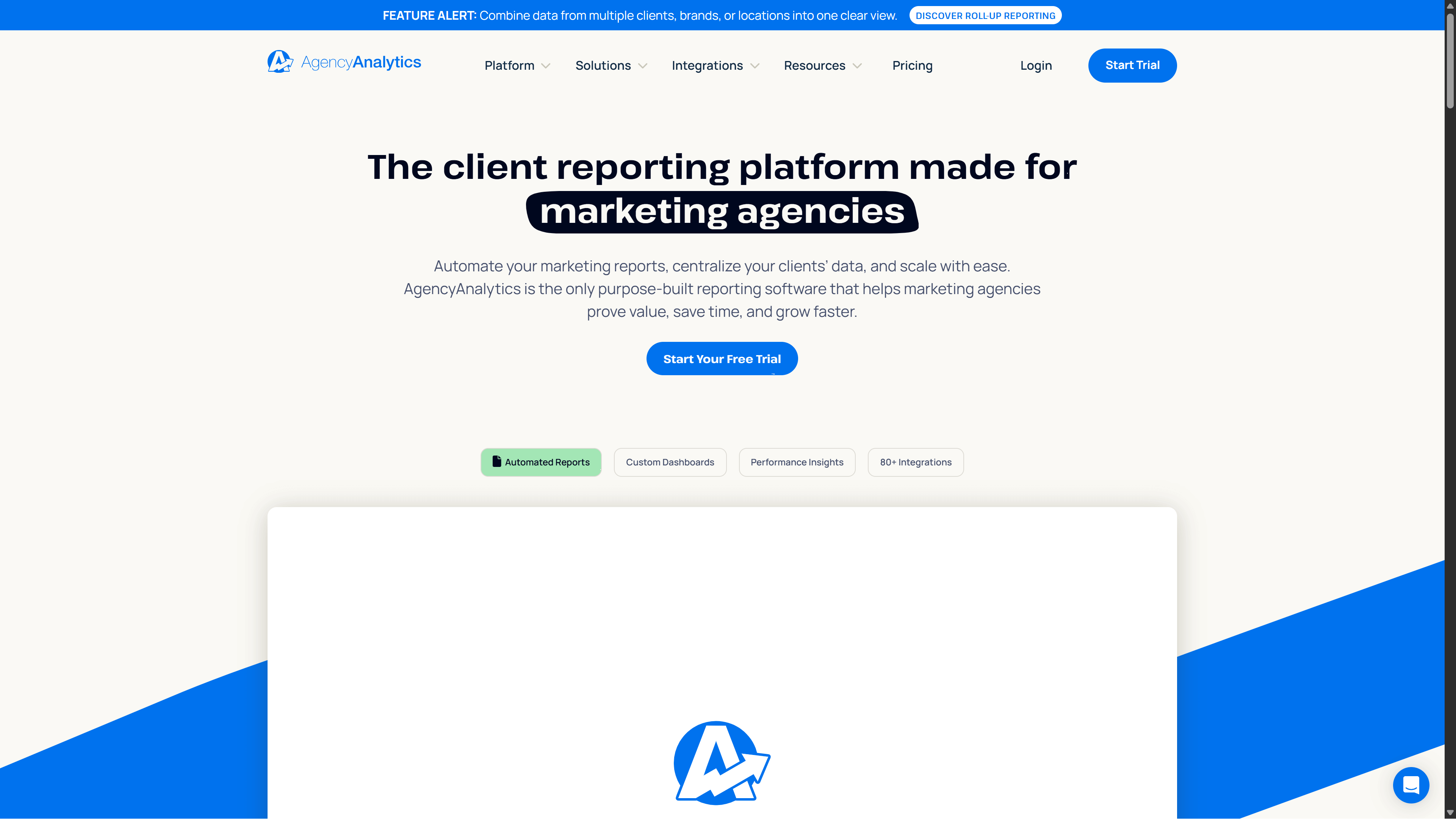 AgencyAnalytics solves the agency problem of pulling data from dozens of different marketing platforms into coherent client reports. The platform integrates with over 80 marketing tools and automatically populates white-labeled dashboards with your agency branding.