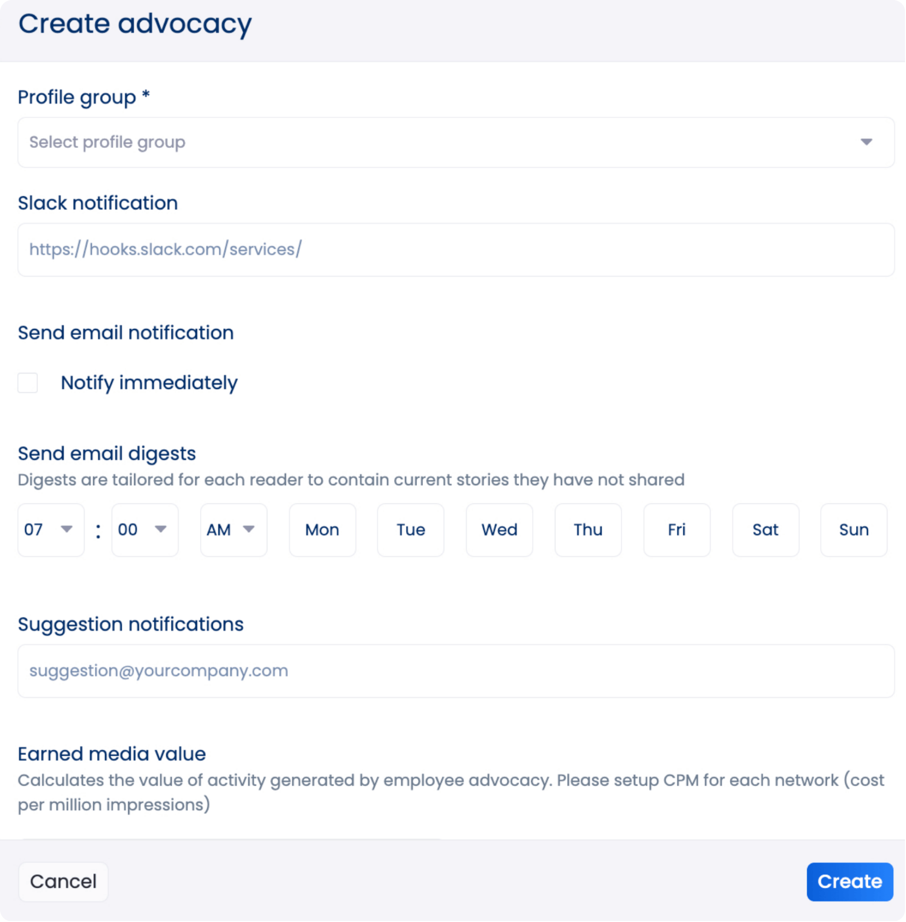 You can set up Slack and email notifications to alert your team and advocates when new posts are up and ready for them to share.