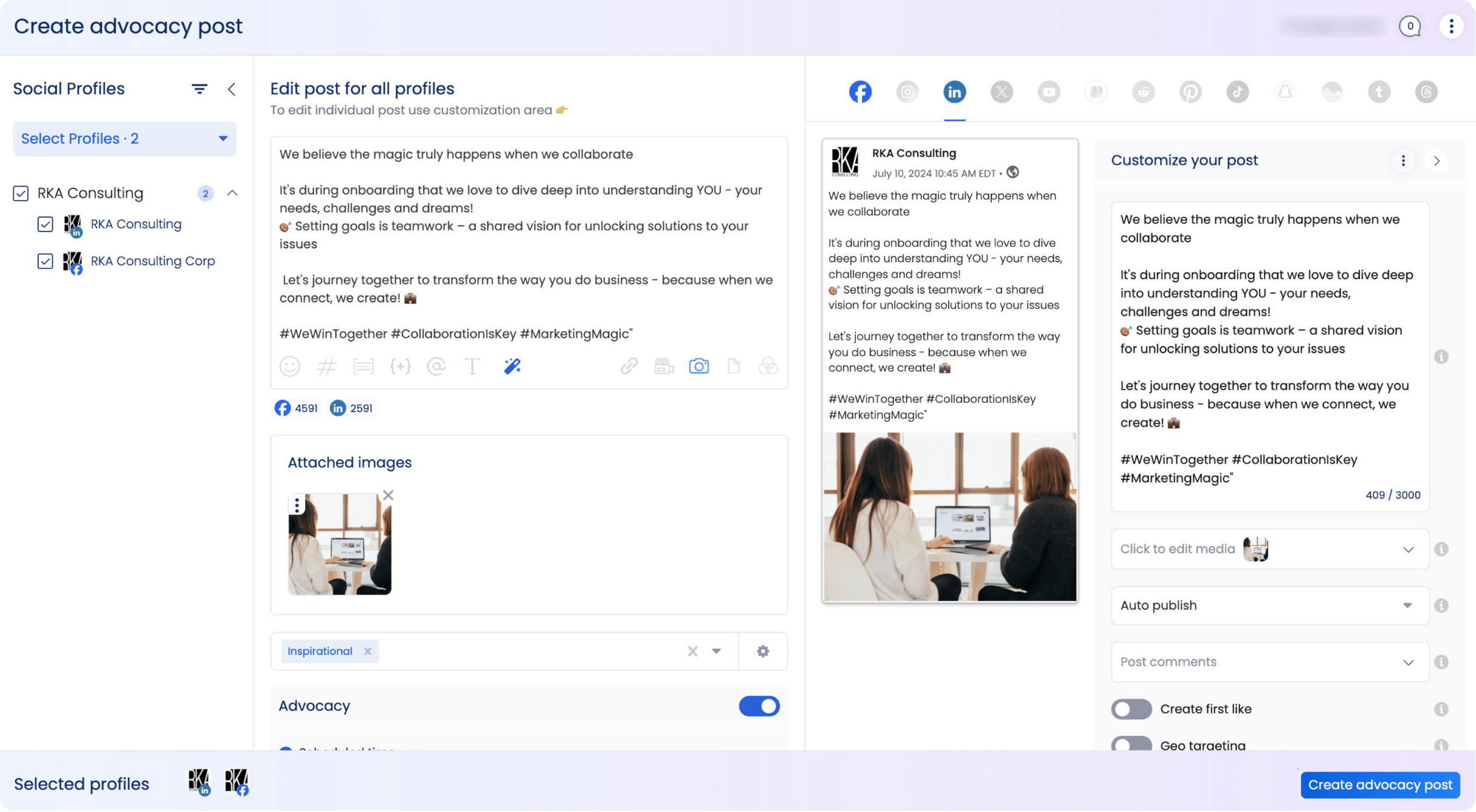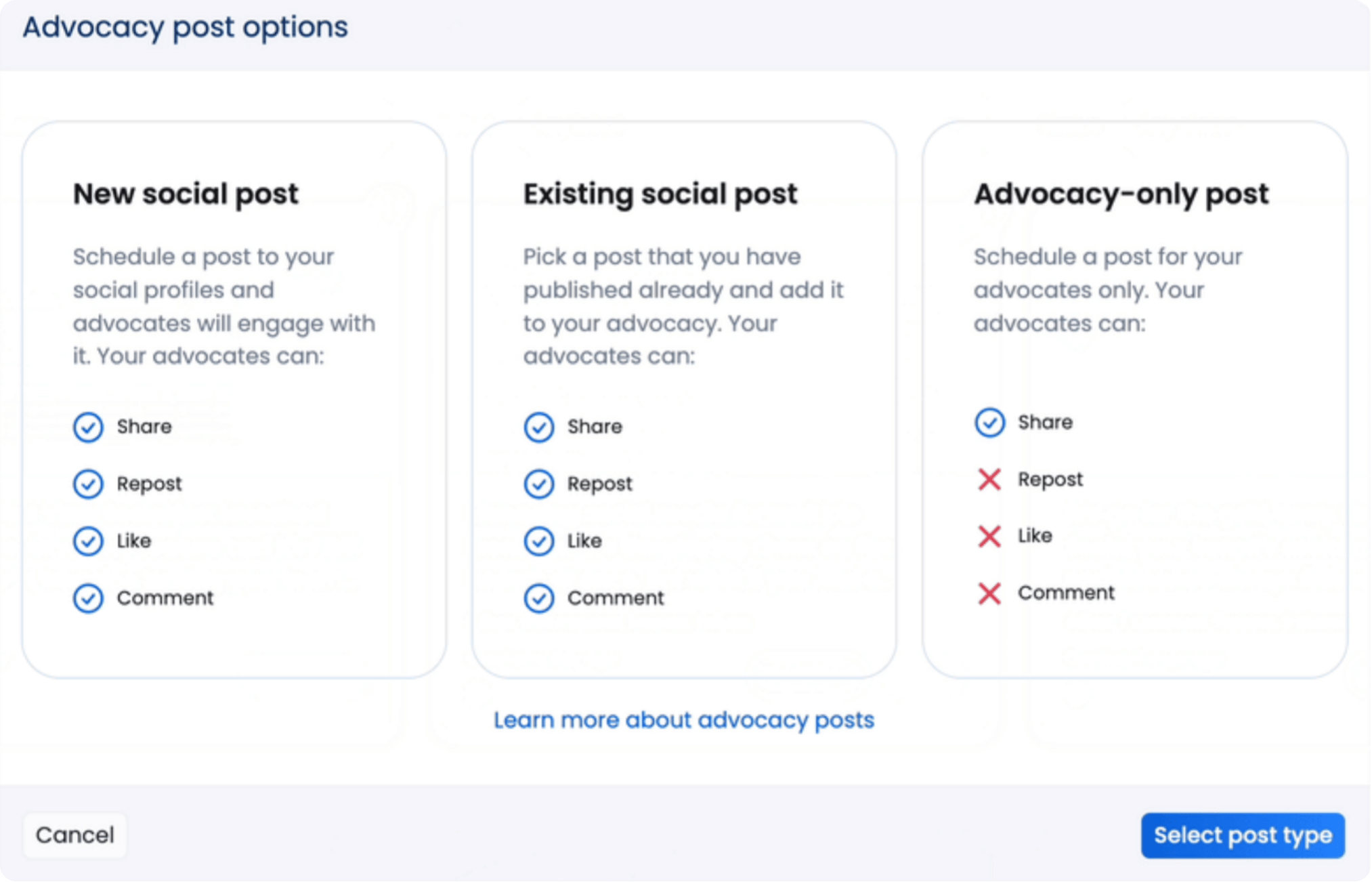 Create and customize your advocacy post accordingly.