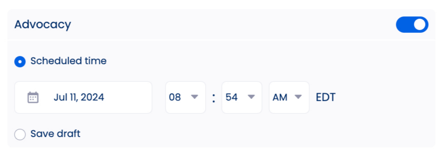 Use Vista Social’s AI Assistant, which now learns from your previous campaigns to write captions and taglines that match your brand’s voice naturally. You can schedule a time to make your advocacy posts available to your advocates or save them as drafts.