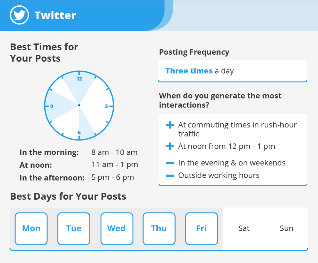 If you post on Twitter while your target audience is not active, you will not hit the bullseye. Use analytics to determine when users are most active and ready to interact with content. According to the universal statistics in terms of the best times to post on social media in 2021, you should pay attention to the following: