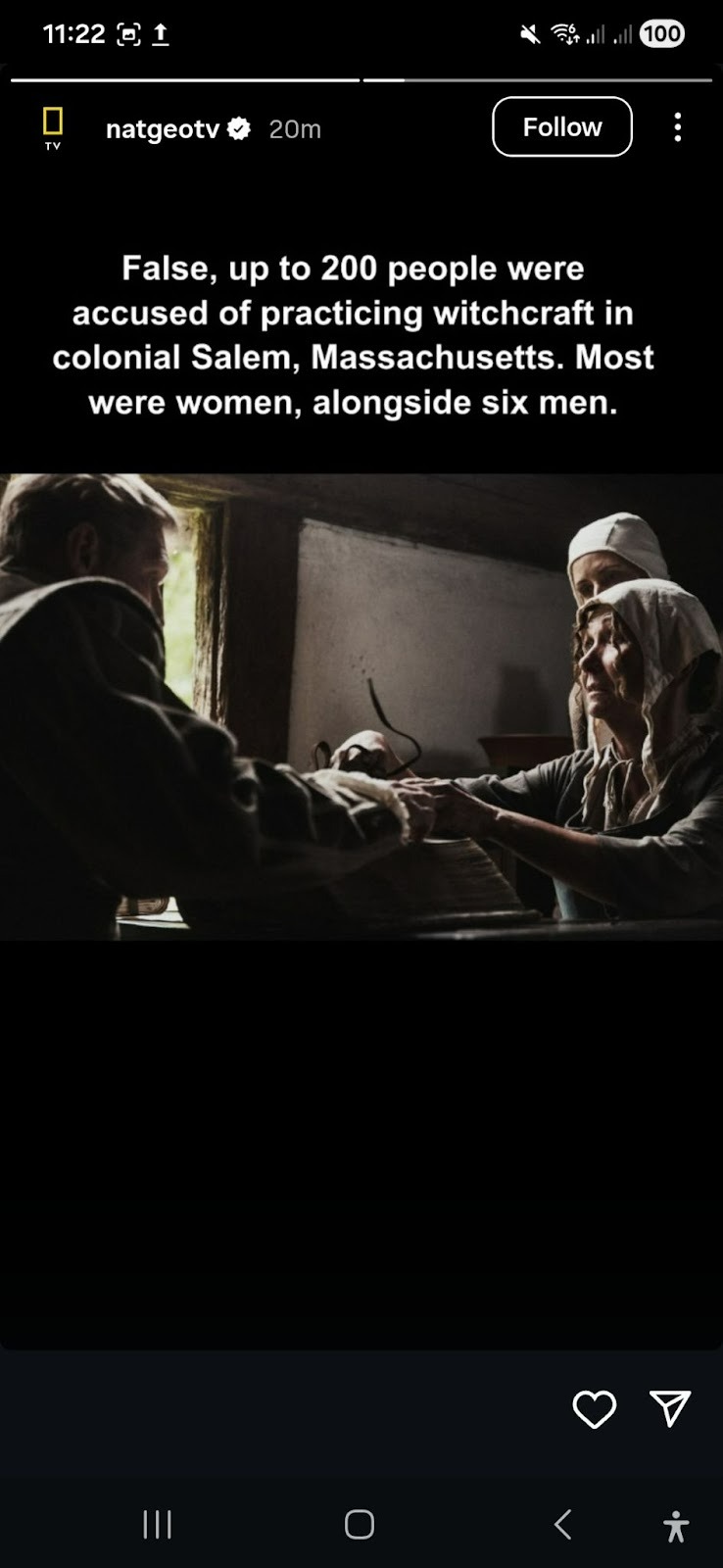 Example: National Geographic uses Stories to teach history through interactive quizzes about the Salem witch trials. They first share an interesting fact about the trials, then follow up with a true/false quiz question to test what followers learned.
