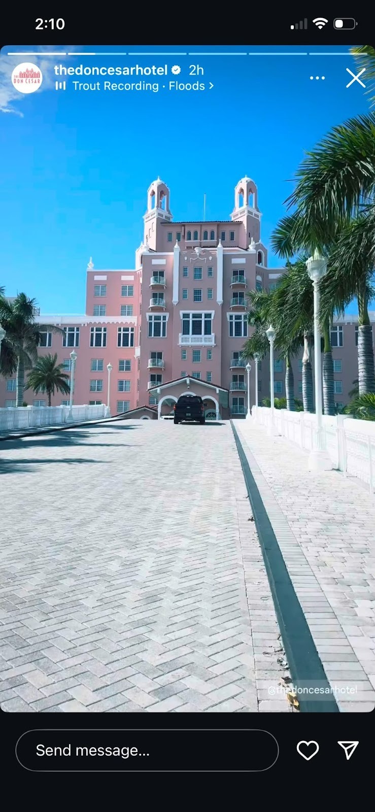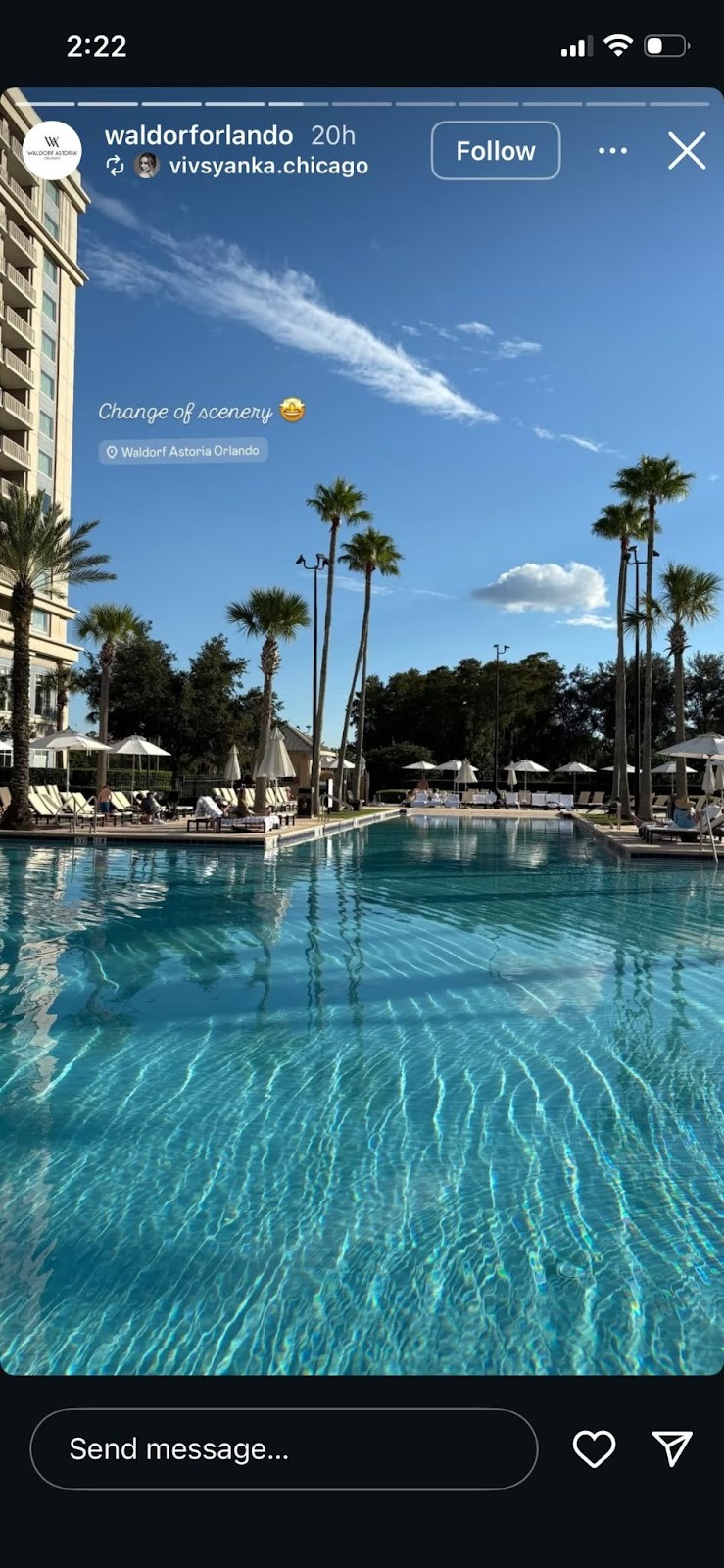 Tag other accounts in your Stories with mention stickers. (You can see a small tag in the bottom right corner for the hotel this creator is staying at in the example above.)