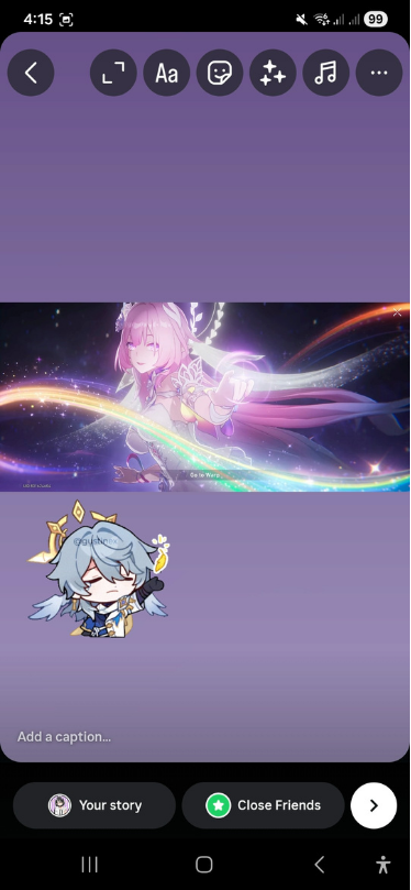 Step 4: Add features to your Story by tapping the text icon (Aa) to add text, tapping the sticker icon (smiley face) to add stickers, polls, or questions, tapping the music note to add songs, or using the drawing tool to add drawings.