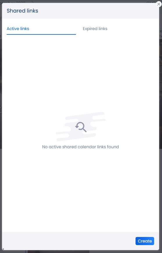Click this icon on the top right corner of your dashboard and click on Share. A window will open letting you know if you’ve previously created any shared links. Or you can click Create to grab a link to share with your team or clients.