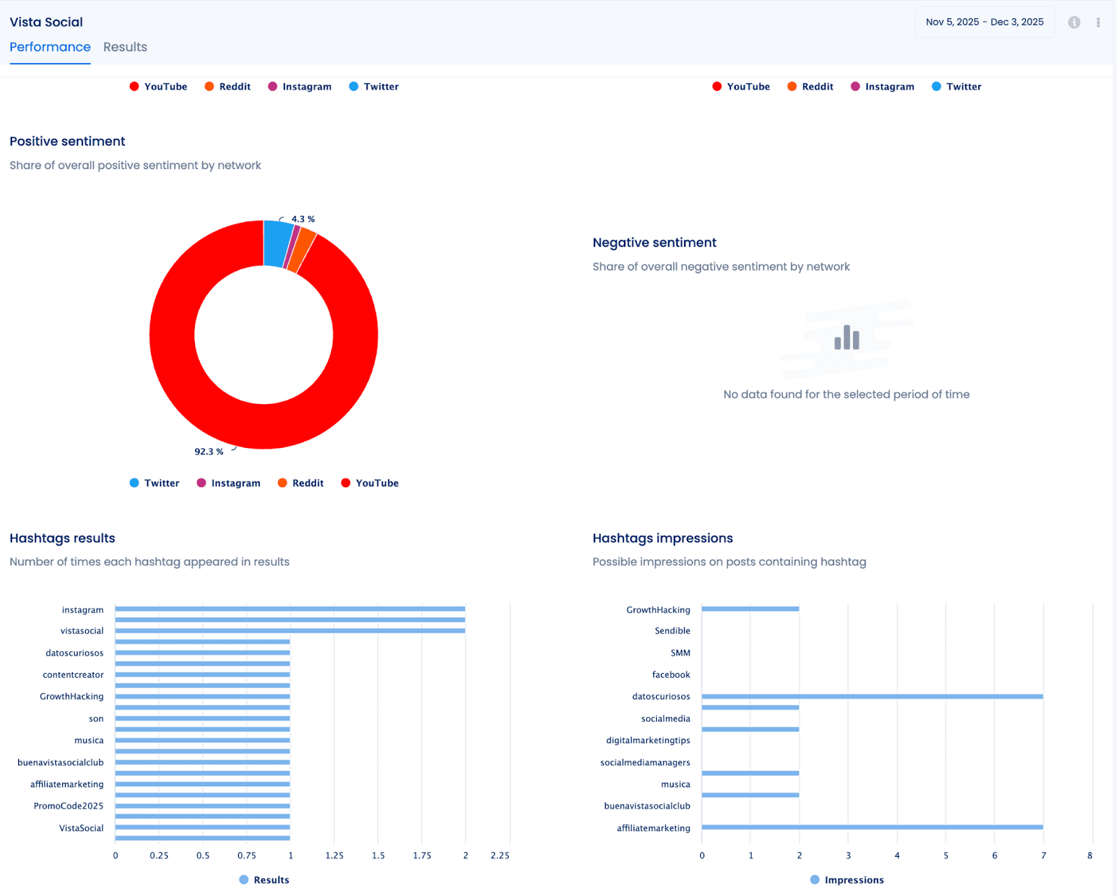 Vista Social helps with this by monitoring conversations that involve your brand. Its social listening tool tracks unusual activity or rising negative sentiment so you know when something needs attention.
