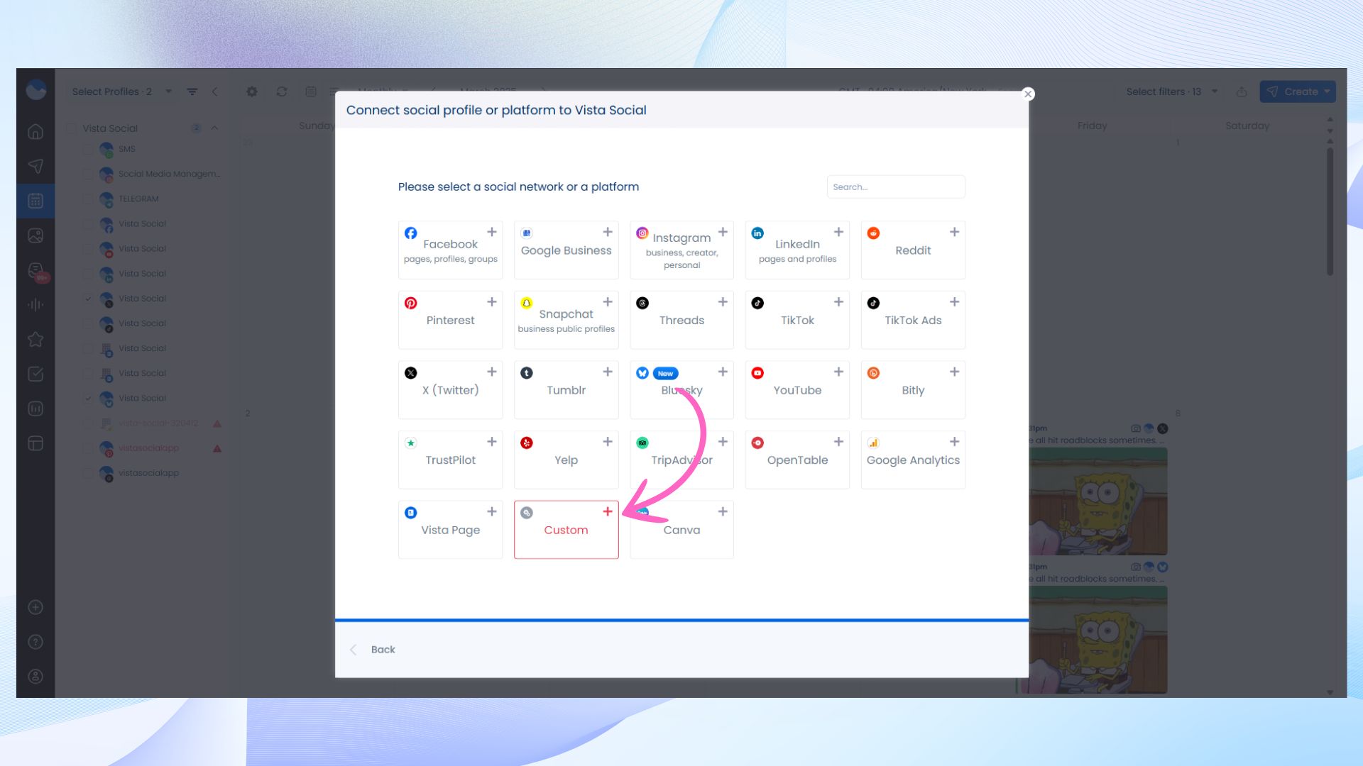 Setting up your Custom Profiles is as easy as adding a new social account.