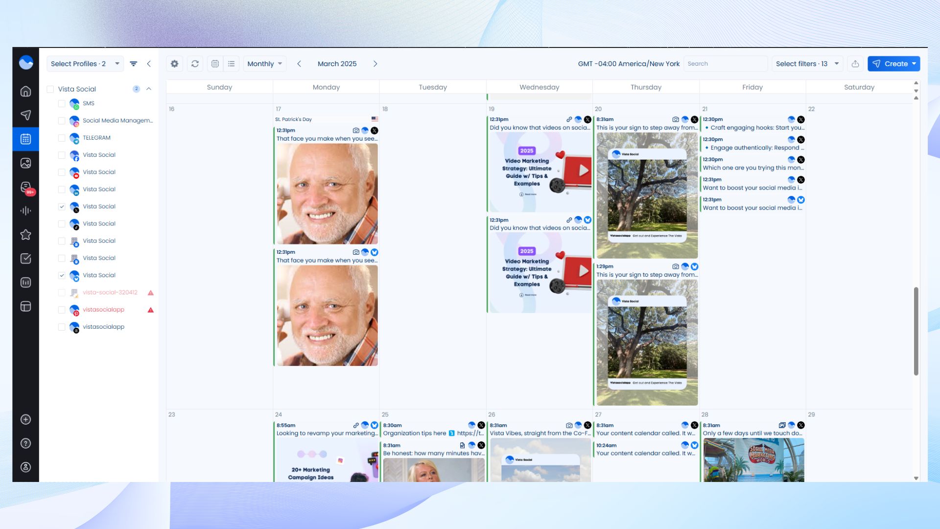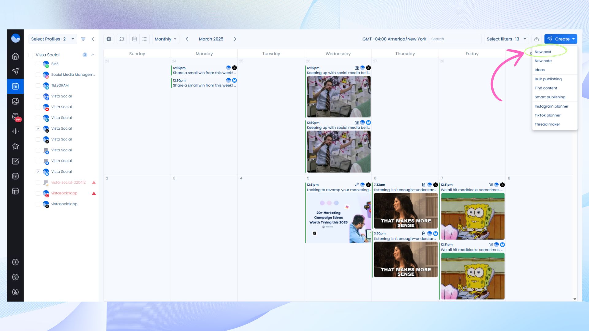 With Custom Profiles, Vista Social’s calendar becomes a true marketing command center. Everything is in one place, making multi-channel coordination easier than ever.